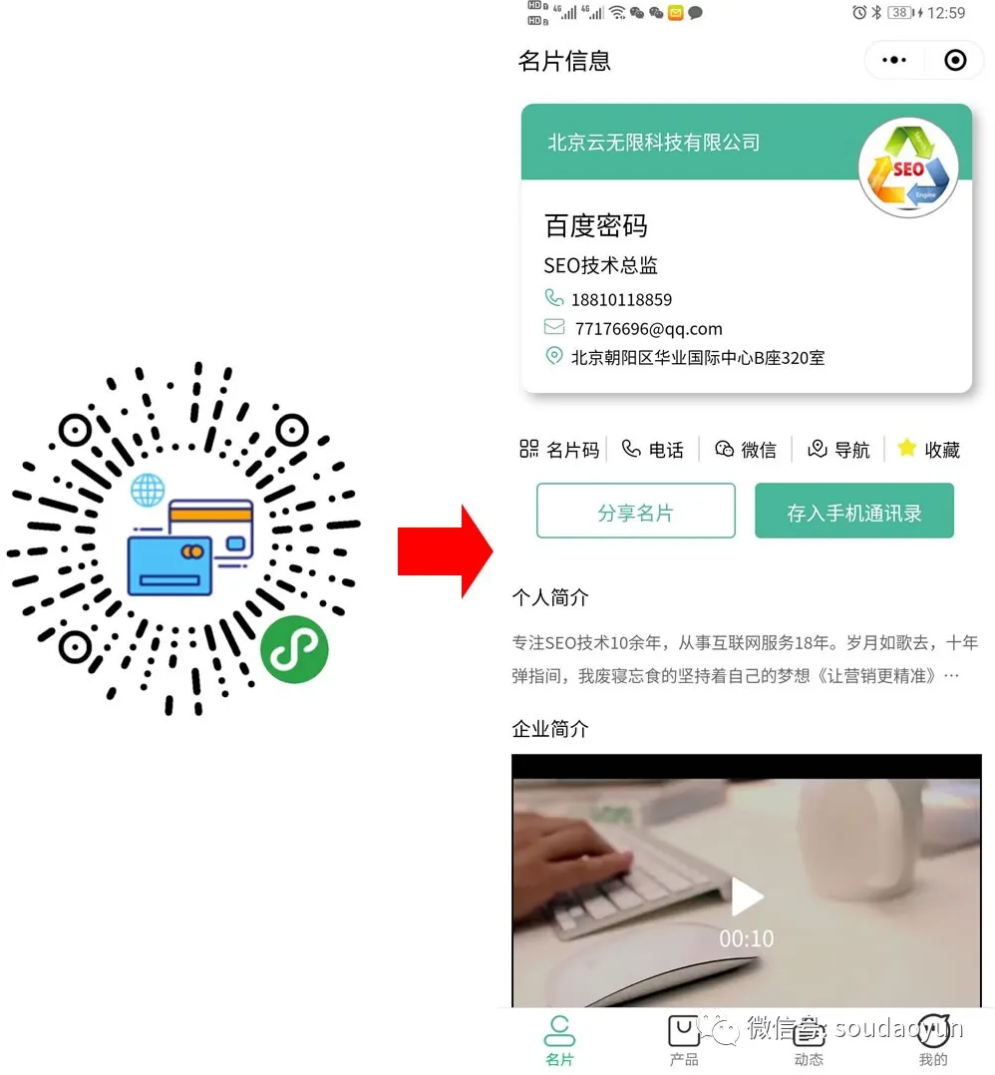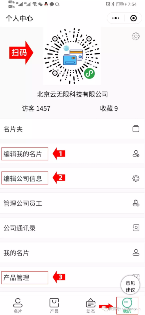 微信搜索“搜到名片”,微信授权后点击“我的”进行资料完善,或者扫码进入编辑公司资料。