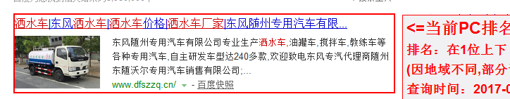 网站无排名,一切等于零,在好看的网站没有排名,没有流量也是白搭,只有我们网站的关键词越来越多的排到百度的首页,排到百度前三,在可以带来大量的流量才有几处谈转化率。在这篇文章中我们来一起谈谈一个洒水车的网站优化成功案例。通过此站,我们来说一下网站优化过程中需要注意的一些细节。