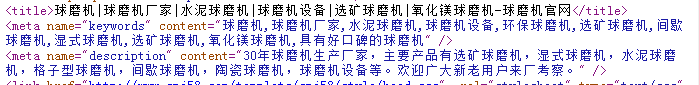 网站的TDK是应该网站的重中之重,网站的TDK能决定网站长期发展排名情况,刚接到站的时候,网站TDK设置非常不合理,标题只有“球磨机厂家”,关键词和描述都只是“球磨机”,这是非常不合理的,在跟客户进行沟通后,我们对网站的TDK进行了重新编辑填充。