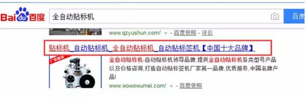 很多时候我们在做SEO的时候往往标题会这么写“贴标机_贴标机视频_贴标机工作原理-公司名称”。这类常规的写法的确可以在搜索引擎的标题这块加分,但是这类操作方式并无任何意义,因为你要卖贴标机,好比我前面投稿写了一篇文章叫做不以营销为目的的SEO都是耍流氓。如果我们换一种写法,如下图所示: