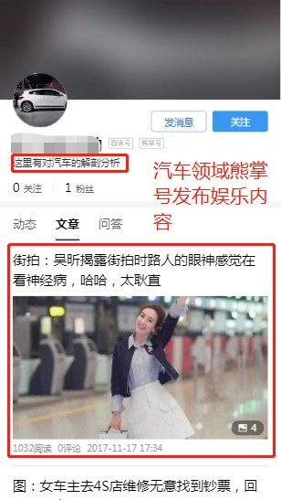 反馈:熊掌号名称与领域不符。此账号为个人账号,但使用的“汽车行”属于企业类名称,因此不能通过。